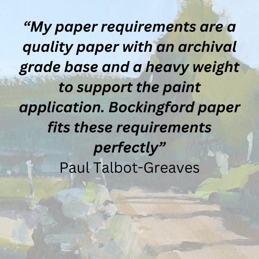 These papers are robust, and come in substantial weights to boost their power to resist watermedia from making them buckle (cockle) when painted. Coupled with St Cuthberts Mill’s papers being ‘mould made’ on a cylinder mould machine, which gives the fibres inside the sheet a more random distribution, so when the paper gets wet, it expands in both directions giving a flatter paper (this is in contrast to standard papers, that are made on a fourdrinier machine, whose fibres lie in one direction, making them prone to unsightly buckling when wet, which is difficult to paint on).